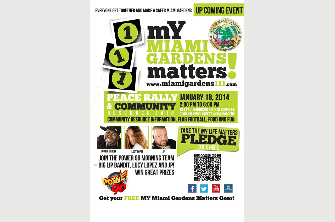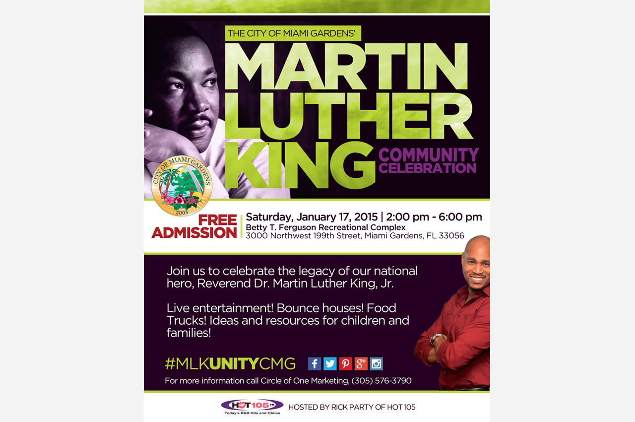 Circle of One has worked with the beautiful City of Miami Gardens for over 10 years, since they were a very young city and we were a very young agency. We’ve grown up together. We have worked on many initiatives with and around the City. In 2013, we were tapped to create an anti-violence campaign for The City and to instill a sense of pride in its residents. The My Life Matters/Your Life Matters/Miami Gardens Matters Campaign included public relations, event management, brand development, graphic design, spokesperson acquisition and video production. We’ve also produced some MLK events most recently 2015 Martin Luther King Community Celebration.